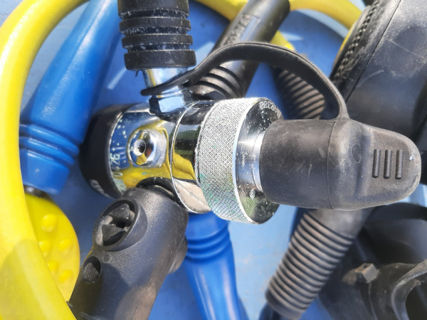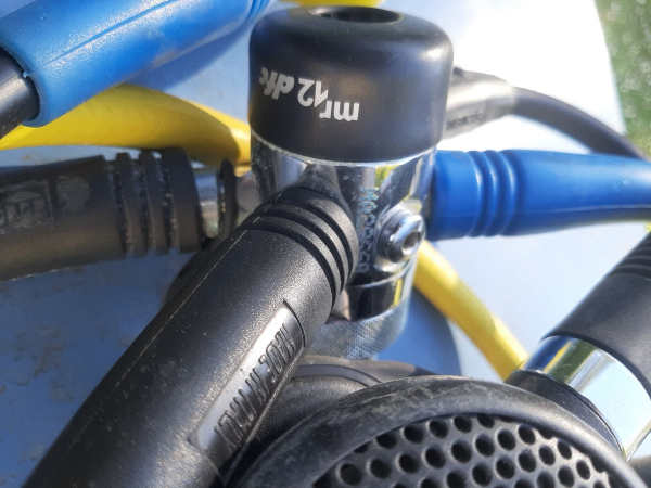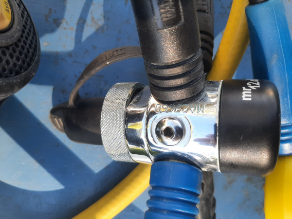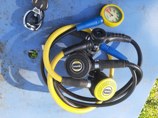 Detendeur MR12 Mares, très bon état, 2 2ème étage, un principal et un octopus, un mano grand format, direct système, monté en din mais étrier fourni, sacoche de transport.