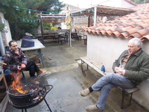 L'heure du repas et de l’apéro s'approchant, allumage du barbecue, c'est là que notre jeune Nelson a passé son brevet de bûcheron après plusieurs essais.