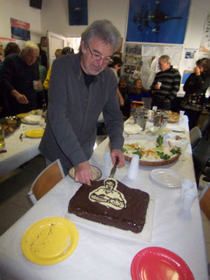 Nous avons pu déguster le gâteau au chocolat concocté par "JM" et décoré par son auto portrait au chocolat noir et blanc; que de l'Art avec un grand "A" et un grand "C" comme culinaire.