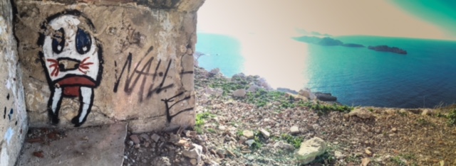 Changement de décor et fin des envolées lyriques en arrivant au sémaphore : abandonné depuis plus de 30 ans et ainsi laissé à l’assaut des vandales, des pilleurs et tagueurs en tout genre ont détérioré ce patrimoine militaire marseillais.