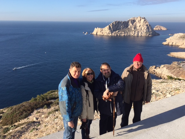 Cinq Morses se transforment en randonneurs : Jean- Claude, Henri, Marc et Frédéric, rejoints quelques instants plus tard par Geneviève ; attirés qu’ils sont par cet espace littoral et paysager ouvert sur la mer qui abrite des paysages grandioses. Vus d’en haut, le village des Goudes et la calanque de Callelongue rappellent leurs activités industrielles et de pêche du XIXe siècle.