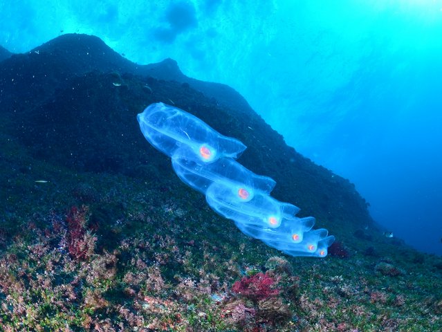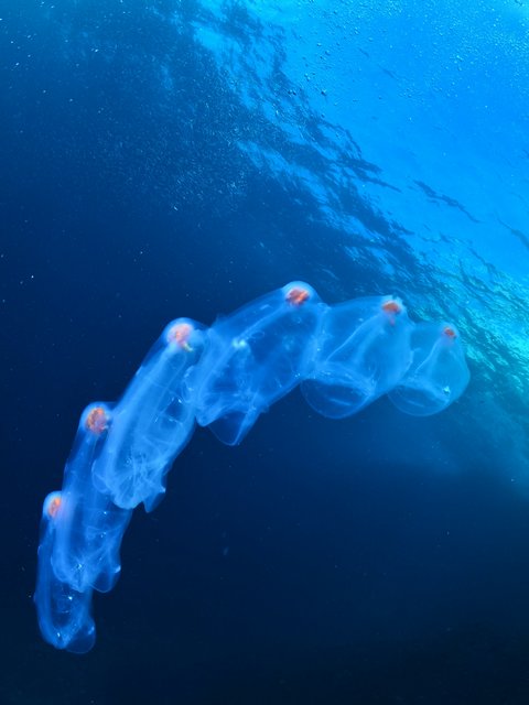 Nous ferons de belles rencontres, et verrons des salpes théthys formant une chaîne assez impressionnante.