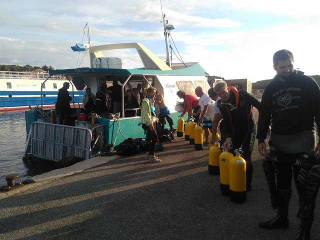 Dès l'arrivée au centre de plongée de la tour fondue, on s'équipe, on rassemble nos énergies et nos forces pour tout mettre sur le bateau.