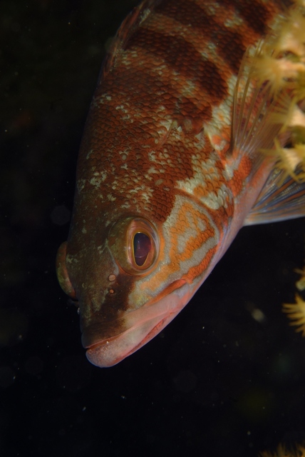 Enfin j'arrive sur un fond de sable et je m'agenouille pour reprendre mon souffle et regarder autour de moi. Et là, une ombre en limite de visibilité, comme un totem de plusieurs mètres de haut. Je nage prudemment. Oui, c'est bien une épave! Mais, je ne suis pas tout seul: bien vite me voilà entouré de mérous géants ou brindle bass ou encore loches. Ils sont partout, j'en compte huit! Ces bestiaux sont énormes, deux cent kilos chacun. Impossible d'en faire le tour avec les bras, des yeux comme des boules de pétanque et une bouche énorme encadrée par des lèvres aussi épaisses qu'une baguette de pain.