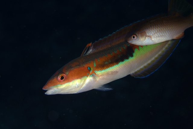 L'eau est chargée, mais il y a quand même dix mètres de visibilité. C'est bien suffisant pour observer la cheminée et le mat principal qui se dresse toujours fièrement trente ans après. Le pont a disparu, mais un enchevêtrement de métal donne plein de cachettes pour toute une multitude de poisson. Plutôt du gros même si rien n'approche les loches géantes: mérous "patato bass" ou "malabar", pagres, barracudas, carangues ignobilis ou carangue speciosus. L'épave est riche et j'ai le droit à un ballet de carangues ignobilis sous la coque près d'une des hélices. Une douzaine de spécimens de plus de 35 kilos, le rêve des chasseurs sous-marins.