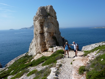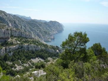 Notre section ce 11/07 fait sa dernière sortie,nous avons choisi de faire une petite ballade entre Callelongue et Sormiou. Nous sommes partis vers 8h du matin du local de la section plongée,en empruntant le GR côtier,accompagnés par une vue splendide sur les iles de Jarre,Plane et Riou,jusqu'au col de Sormiou. Nous avons fait un arrêt mérité dans la calanque de Podestat,ou nous étions seuls pour nous baigner et déguster pour les plus gourmands quelques arapedes,ce petit coquillage qu'on apprécie beaucoup chez nous. Reposés nous sommes repartis sous un soleil plus vigoureux vers le col de Cortiou avec le sentier qui surplombe la calanque du même nom et l'Anse de la Mélette. Arrivés à Sormiou ,un peu transpirant,nous avons été chaleureusement accueillis par lesmembres de l'ODASL,sympathique association de la calanque,qui propose des ballades en kayak de mer. Un petit jaune « léger »nous a rafraichi, et il a été accompagné d'une sardinade improvisée sur la terrasse de l'association ,nous remercions encore l'ODASL pour cette succulente surprise, après un petit verre aux herbes de Provence et un bain de mer ont facilité notre digestion. Un dernier merci à nos amis de l'ODASL et nous voilà repartis vers Callelongue, transportés dans le bateau de la section plongée du club. Mais les surprises n'étaient pas terminés car les plongeurs avaient mis de coté gâteaux et glaces ,dans leur local pour nous associer à l'anniversaire de Sabine ,plongeuse mais aussi randonneuse. Au Final une bien belle journée placée sous le signe de l'amitié, ou il y a eu beaucoup de pas et de ...repas!!! |